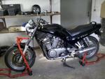 Stahlflex, progressive Federn, Superbike Lenker, Lenkerendenspiegel, schwarze Tachonadeln, rote Cockpitbeleuchtung, Flachmann-Ausgleichsbehälter