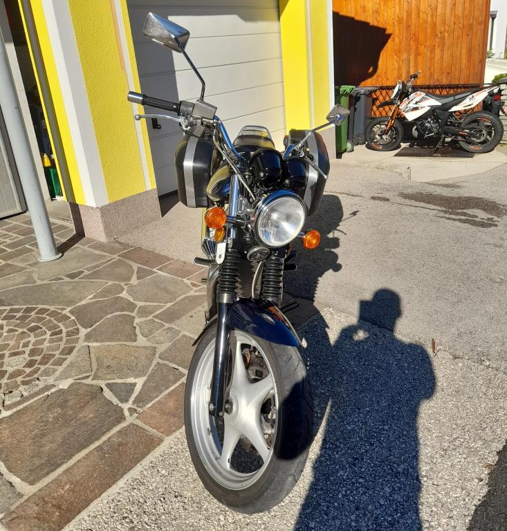 Baujahr 1991 | 82600 km | Originale Suzuki Seitenkoffer, Bugspoiler, LSL-03 Lenker mit längerem Gas und Kupplungsseil, Wilbers Ferden vorne und Hagon Dämpfer hinten. Heck ist noch in Arbeit.