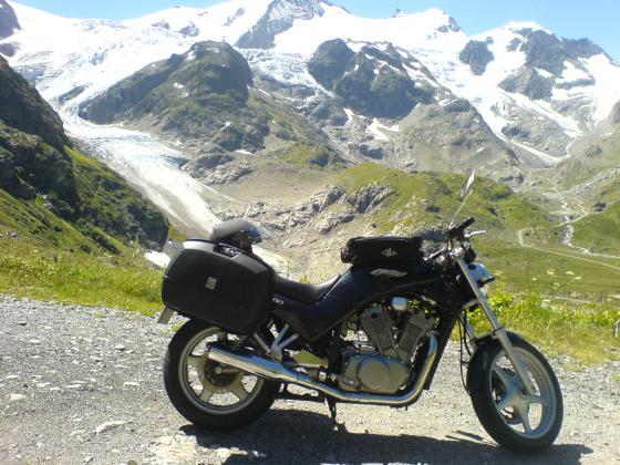 Givi Kofferset, Kellermann Blinker, Progressive Wirth-Federn, Stahlflex, Superbike-Lenker, durchgesteckte Gabelholmen, Tankversiegelung, Warnblinker und umgepolsterte Sitzbank